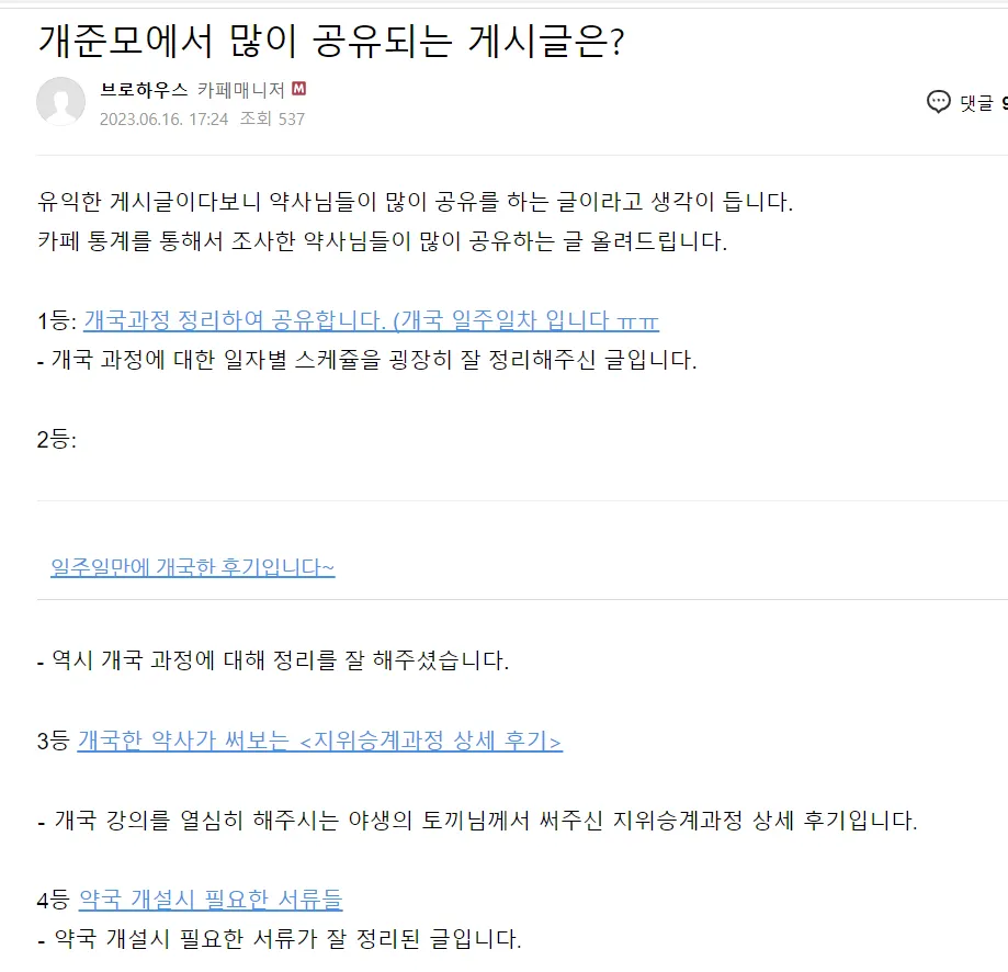 - 개준모는 민감한 약국 개국에 대한 자료를 다루는 커뮤니티로 비공개 카페로 운영을 하고 있습니다. 비공개 카페는 검색을 해도 정보를 찾을 수 없습니다.