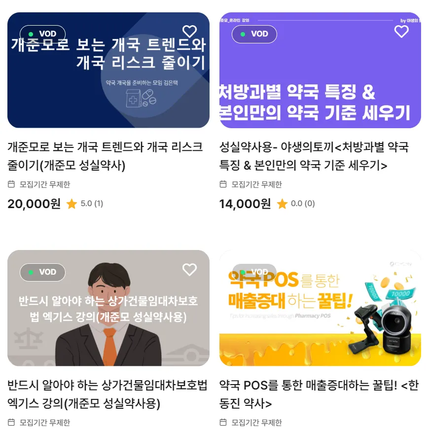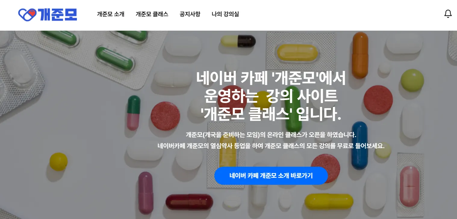 - 개준모 클래스(개준모 온라인 강의 사이트), 열심약사로 등업하게 되면 개준모 클래스의 모든 강의가 ‘1원’